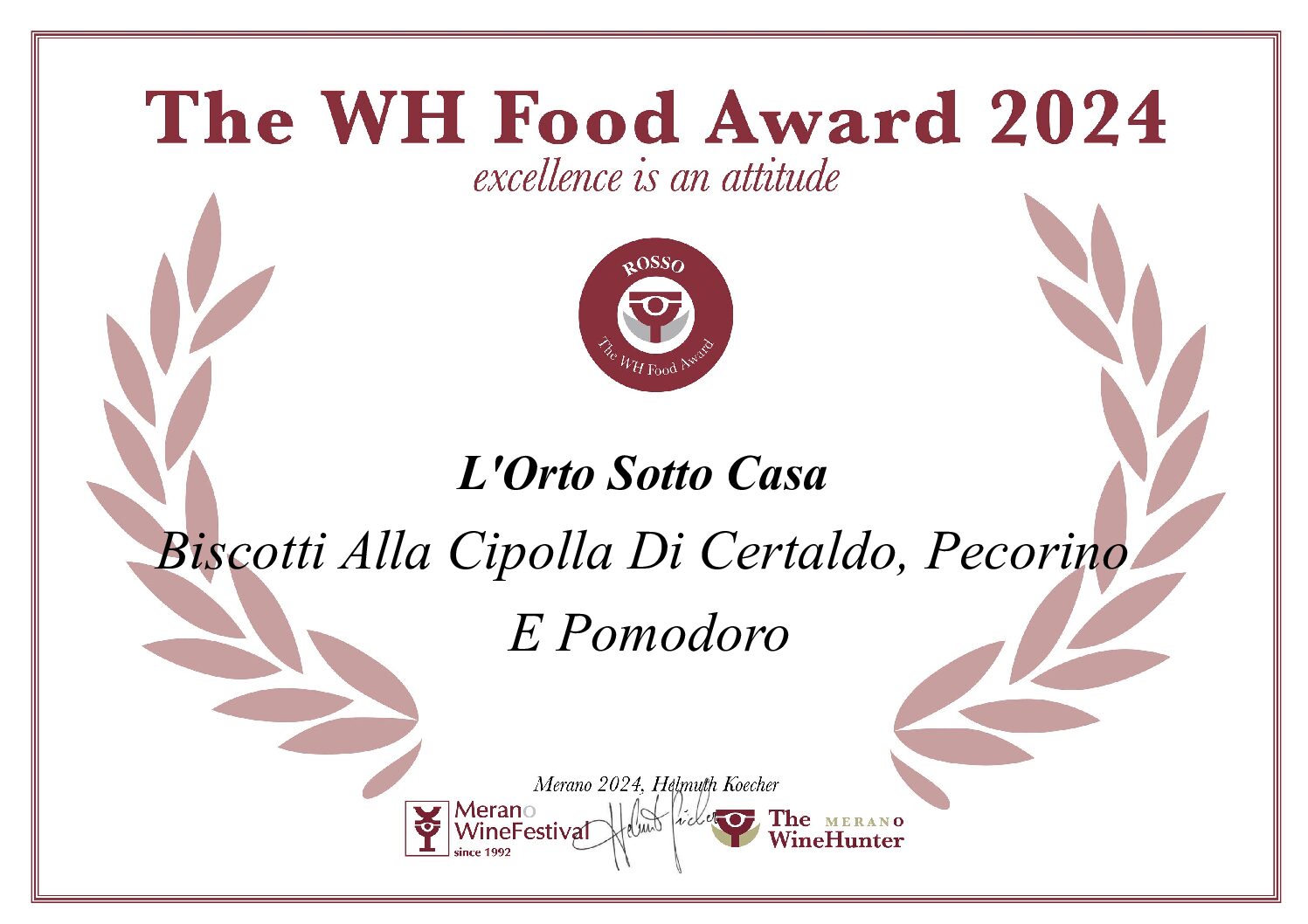 PREMIATO COME ECCELLENZA ITALIANA 2024 DA THE WH FOOD AWARD MERANO